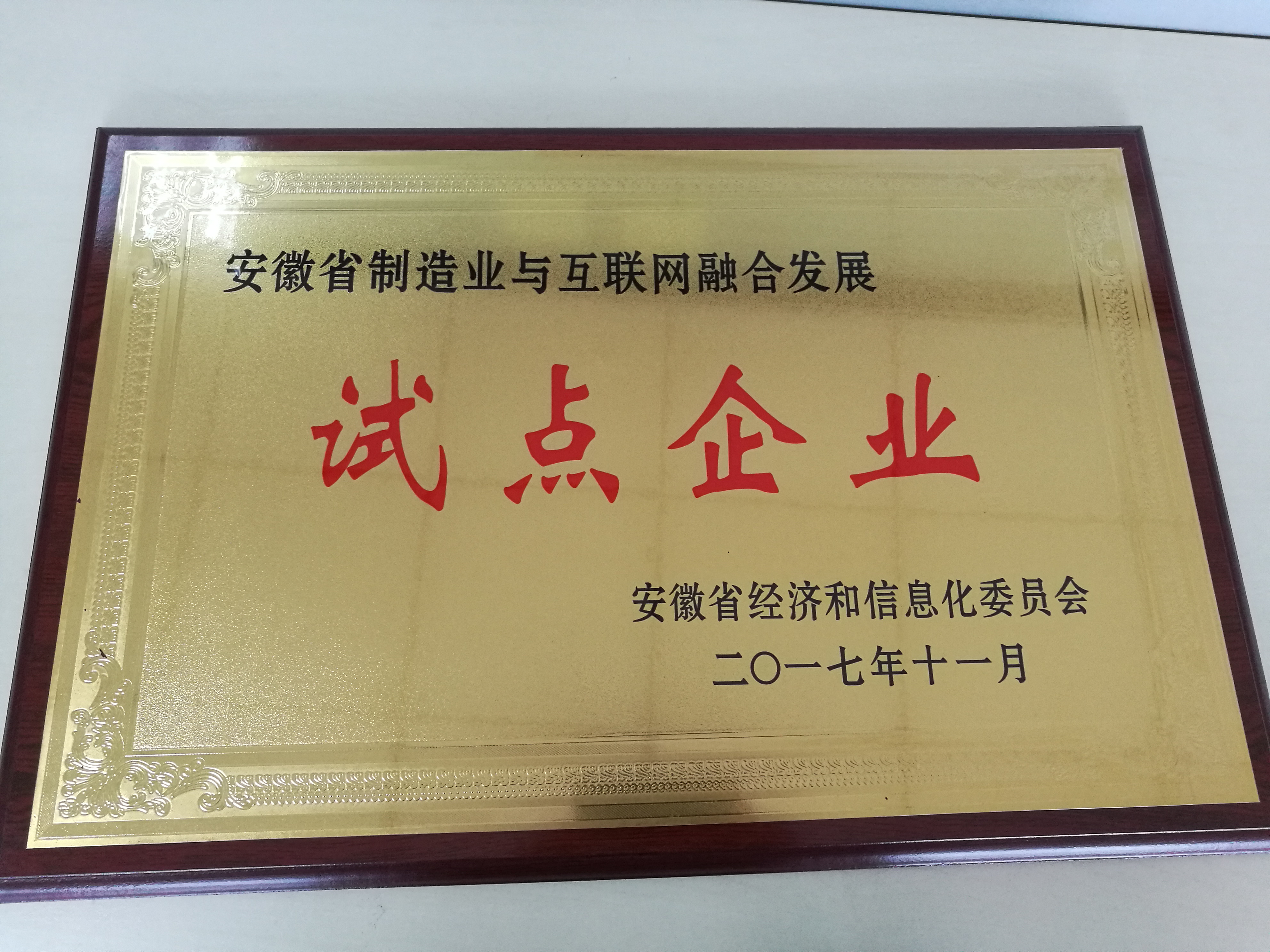 2017 安徽省制造業(yè)與互聯(lián)網(wǎng)融合發(fā)展試點企業(yè)