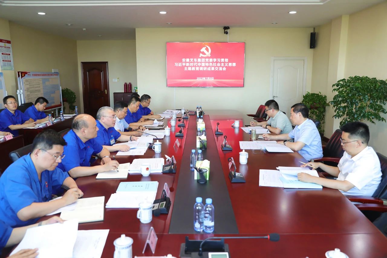 根據(jù)中央及省委關(guān)于主題教育和大興調(diào)查研究的部署要求,7月5日下午,安徽叉車集團(tuán)黨委召開主題教育調(diào)研成果交流會(huì),集中交流調(diào)研情況,并圍繞正反面典型案例進(jìn)行研討,以點(diǎn)帶面、舉一反三,努力把調(diào)研成果轉(zhuǎn)化為推動(dòng)高質(zhì)量發(fā)展的實(shí)際成效。省委第十五巡回指導(dǎo)組...